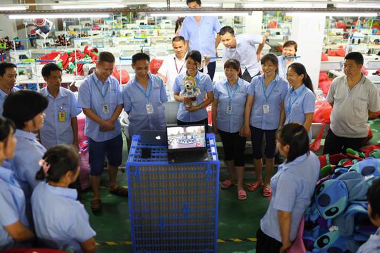 “狼仔”的订单让刘爱敏们着实有些累。订单刚来的时候,厂里叫停了生产线上所有其他玩具的生产,并调动湖南厂800个工人一起攻坚。刘爱敏缝了24年的玩具,多大的订单都见过,唯独没有见过这么急的架势。
