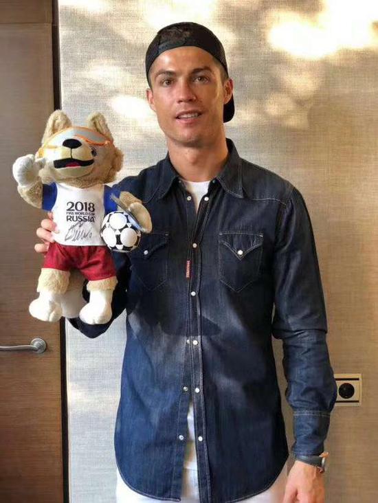 (图:葡萄牙球星C罗在“扎比瓦卡”身上签名并合影。)