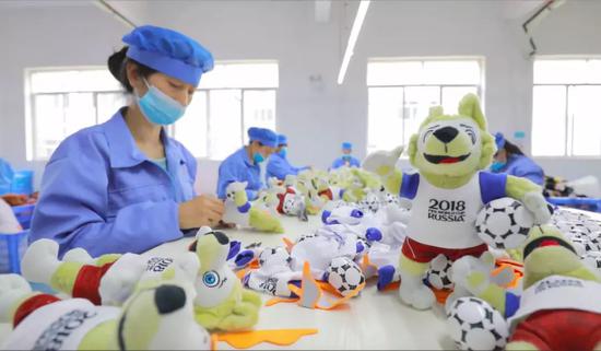 刘爱敏们的订单是通过阿里巴巴1688从一家名叫孚德的公司来的,后者拿下了本届世界杯吉祥物全球(除俄罗斯本土)生产、定价和销售权。2008年美国金融危机后,传统外贸订单锐减,劳动密集型产业则转身拥抱电商。除了从1688拿单,刘爱敏所在工厂生产的玩具超过50%通过阿里巴巴国际站销售。