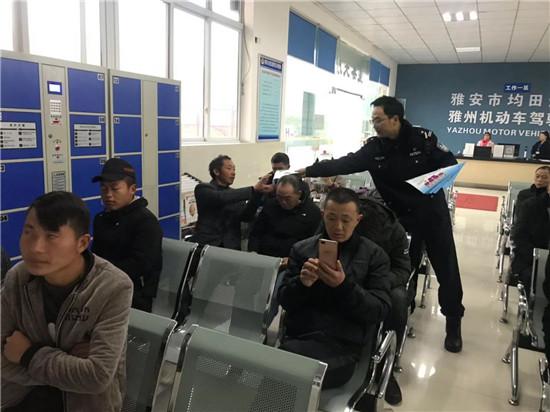 四川新闻网雅安12月25日讯 为进一步强化机动车驾驶员培训机构交通安全宣传教育工作,从源头上预防和减少道路交通事故。雅安市公安局交警支队直属二大队组织民警深入辖区驾校开展文明交通进驾校宣传活动。