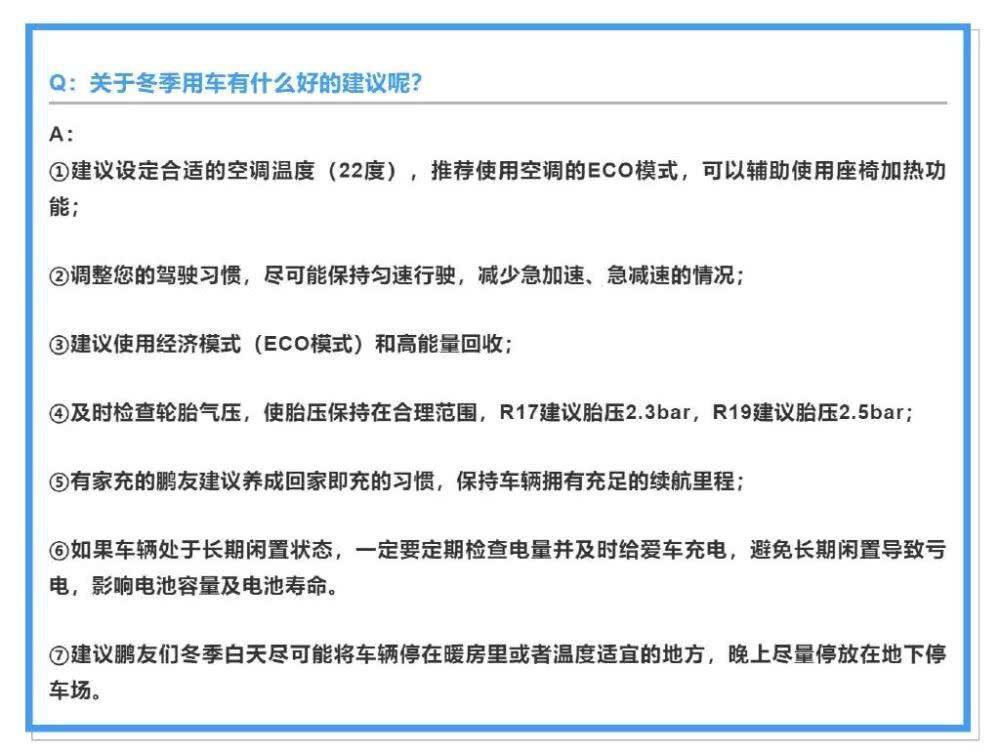 小鹏汽车官方 " 过冬指南 " ,图片来源于网络