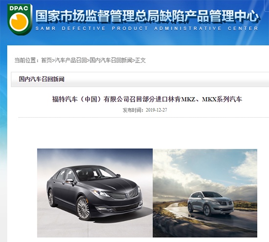 接下来,福特中国决定自2020年1月1日起,召回2015年3月2日至2015年6月27日生产的部分进口2015-2016年款林肯MKZ汽车、2015年5月26日至2015年6月26日生产的部分进口2016年款林肯MKX汽车,共计1351辆。