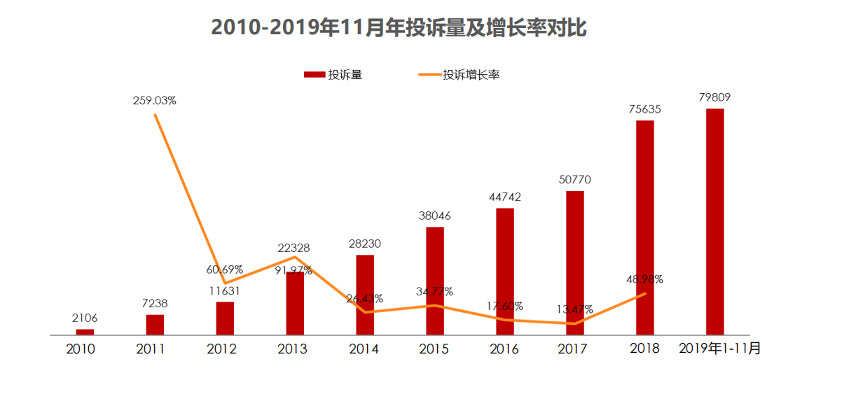 事实上,像李奇这样遇到维保难题的车主不在少数。《2019年中国汽车服务问题实名客诉分析报告》数据显示,今年1~11月,车质网已收到有效投诉约7.98万宗,超过2018全年数据吗,其中服务问题投诉量较2018年同期增长41.91%,约1.76万宗。