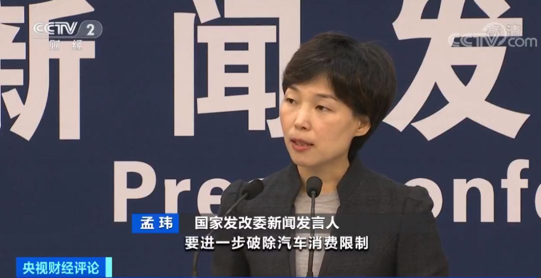 国家发改委新闻发言人 孟玮:稳住汽车等消费大头,破除汽车消费限制,探索推行逐步放宽或取消限购的具体措施,推动汽车限购政策向引导使用政策转变。