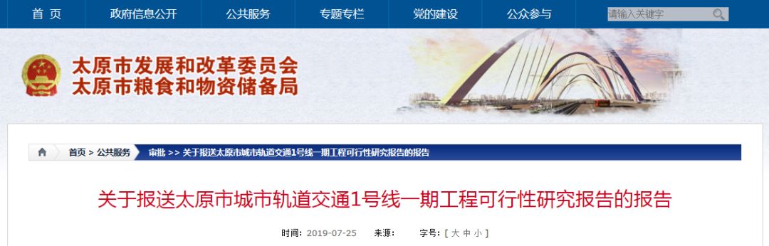 7月25日,记者从太原市发改委了解,太原市轨道交通建设管理办公室委托中铁工程设计咨询集团有限公司编制的《太原市城市轨道交通1号线一期工程可行性研究报告》已经编制完成。
