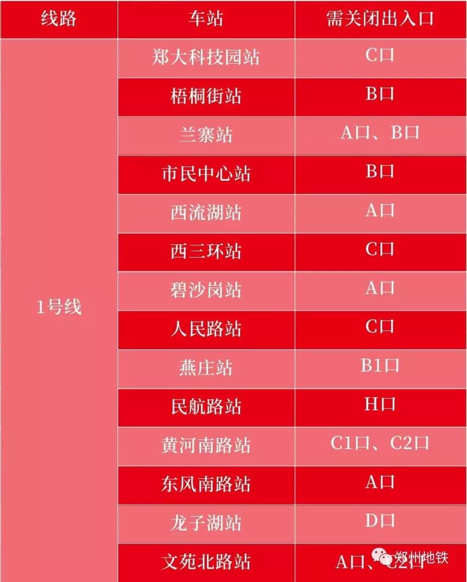 为全力做好新型冠状病毒感染的肺炎疫情防控工作,郑州地铁根据客流情况及行车间隔合理评估,自2月1日起,部分车站出入口将临时关闭,开启时间另行通知。
