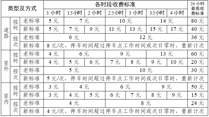 注:优惠5要求各类停车场执行;优惠1-4要求实行政府定价、政府指导价的停车场执行,实行市场调节价的停车场以其公示牌公示为准。