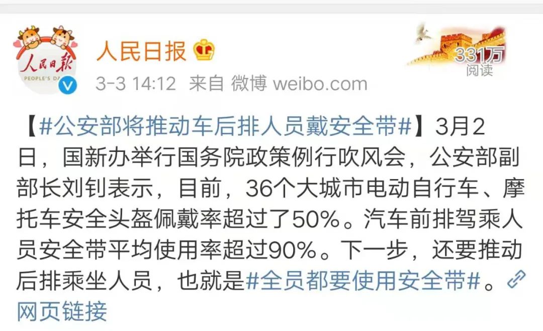 下一步,要推动后排乘坐人员