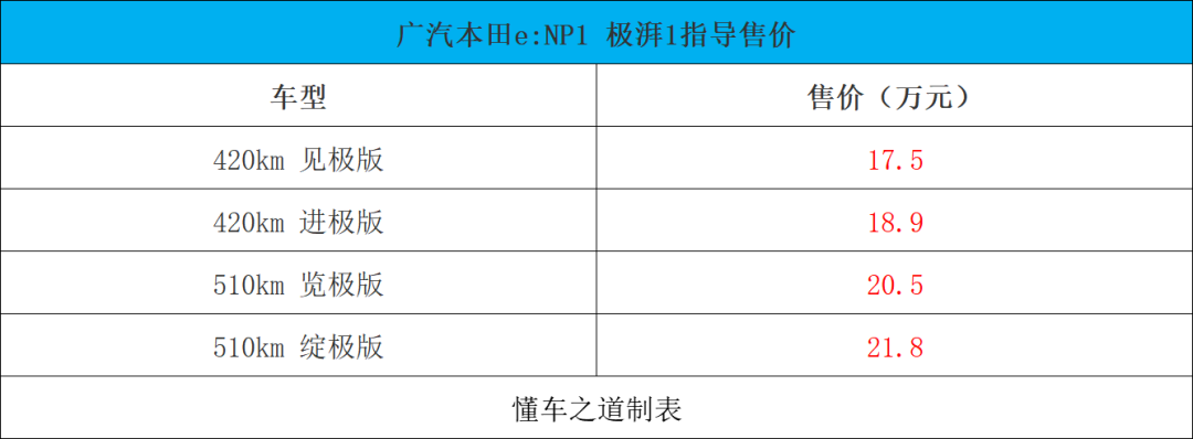 6月20日晚,广汽本田e:NP1 极湃1正式上市,新车共推出4个配置车型,售价17.5-21.8万元。消费者购车还能享受安心质保、无界智联等优惠政策。新车是广汽本田旗下纯电动SUV,拥有420km、510km可选。
