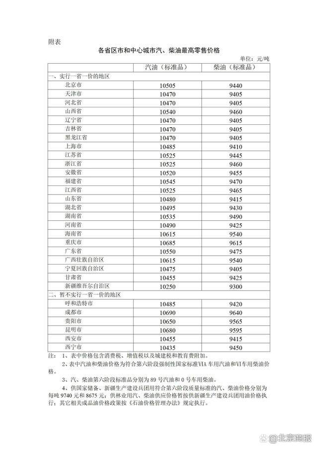 附:各省区市和中心城市汽、柴油最高零售价格