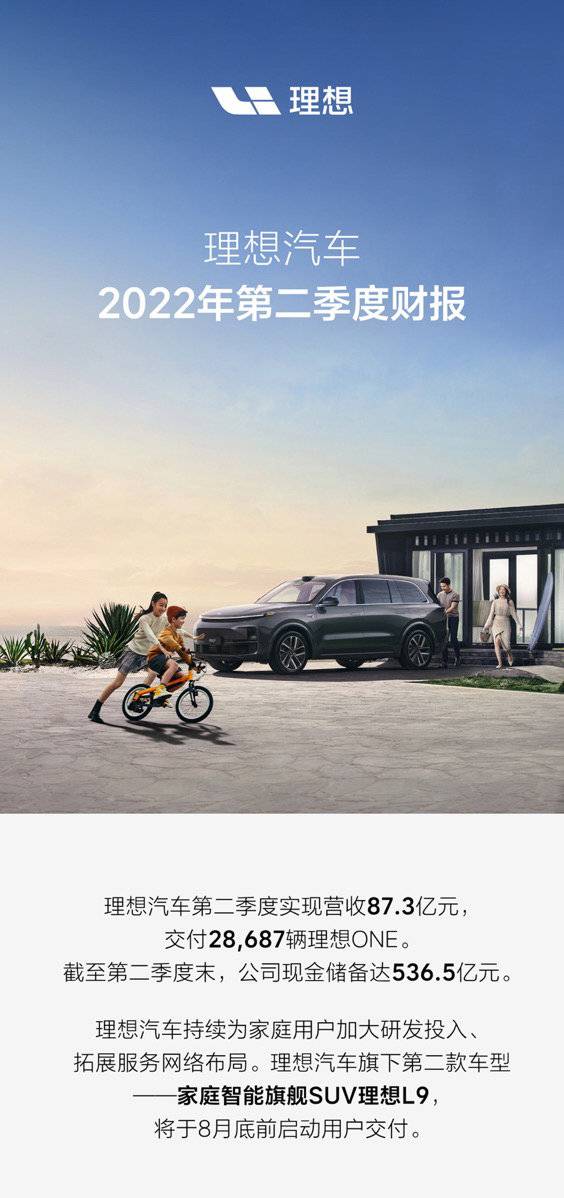 8月15日,理想汽车公布2022年二季度财报,数据显示2022年第二季度,理想ONE的交付量为28687辆,同比增长63.2%。