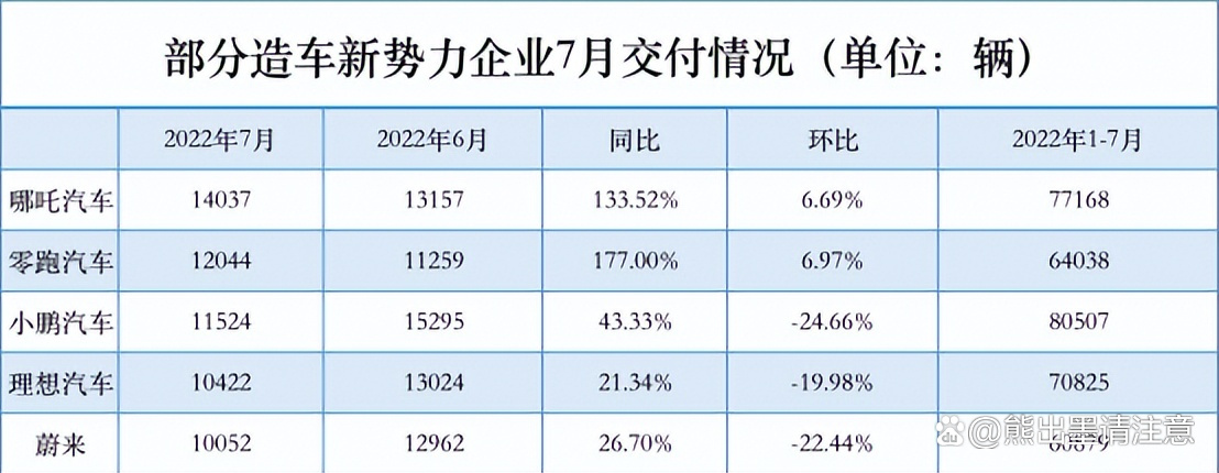 以月交过万这一主流标准为参照,零跑汽车自三月开始便一直处在这一水平线之上。今年1-7月累计交付6.4万辆。哪吒表现更为突出,1-7月则累计共交付7.72万辆。此外,问界也已经连续三个月保持着月销过万。