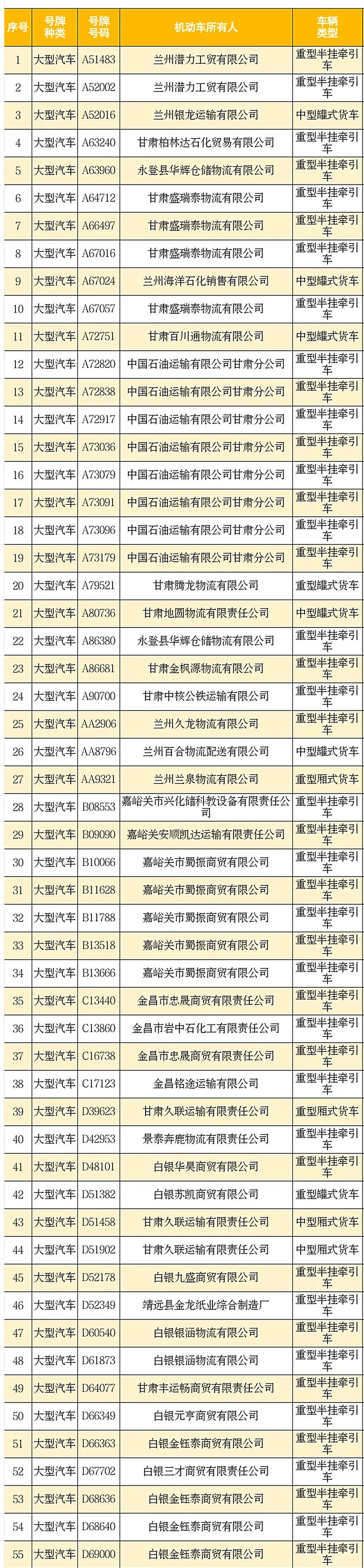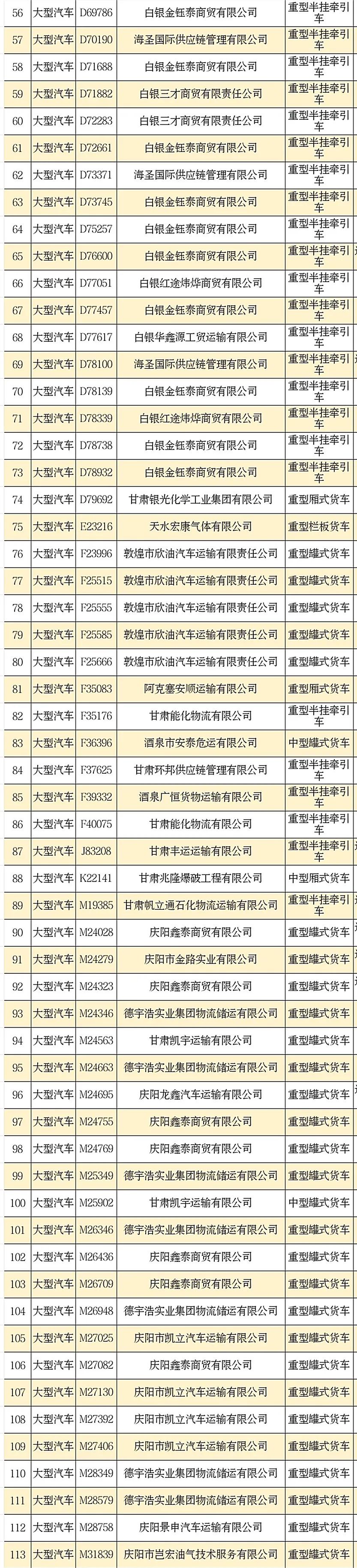 近日,甘肃公安交管部门对全省重点车辆进行了排查,现对即将检验到期(2022年8月31日)的166辆危化品运输车辆予以公布,提醒督促机动车所有人尽快办理车辆检验。