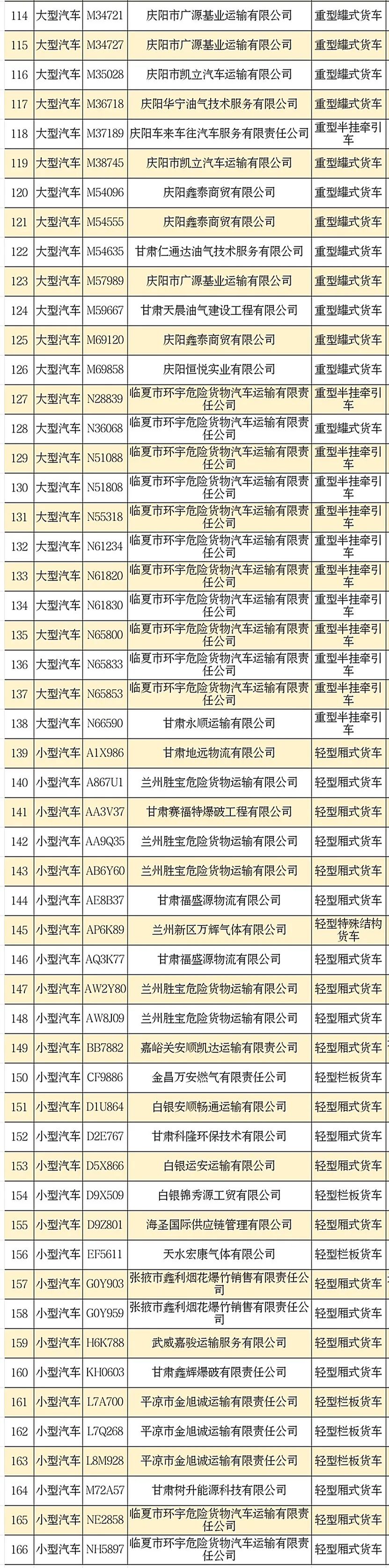即将检验到期的166辆危化品运输车辆名单