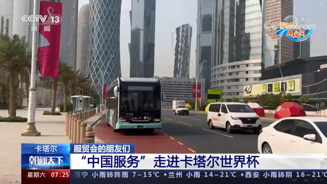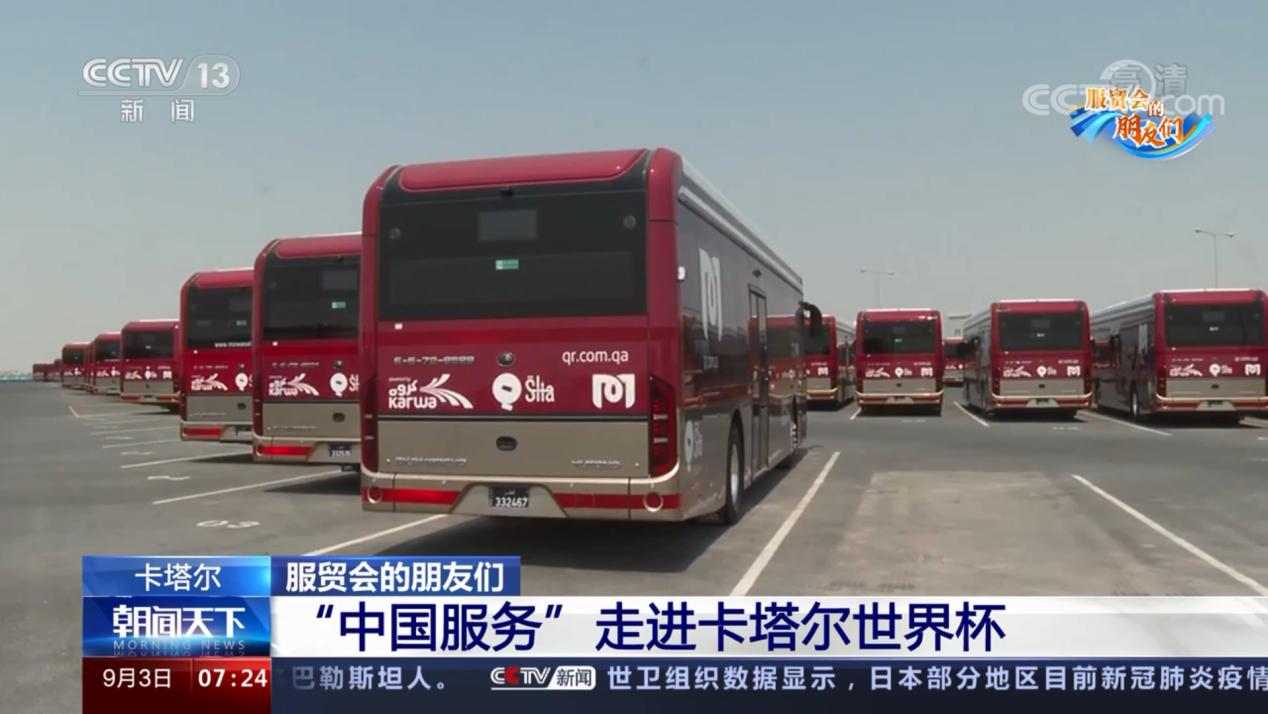 2022年中国国际服务贸易交易会正在北京举行。9月3日,CCTV《朝闻天下》以“中国服务”走进卡塔尔世界杯为题,对中国企业为2022卡塔尔世界杯提供服务进行了专题报道。报道称,在卡塔尔世界杯筹备过程中,卡塔尔专门组建了一支由700多台纯电动客车组成的新能源车队,负责世界杯期间的球迷接驳任务,而这些纯电动客车全部来自中国的宇通客车公司。