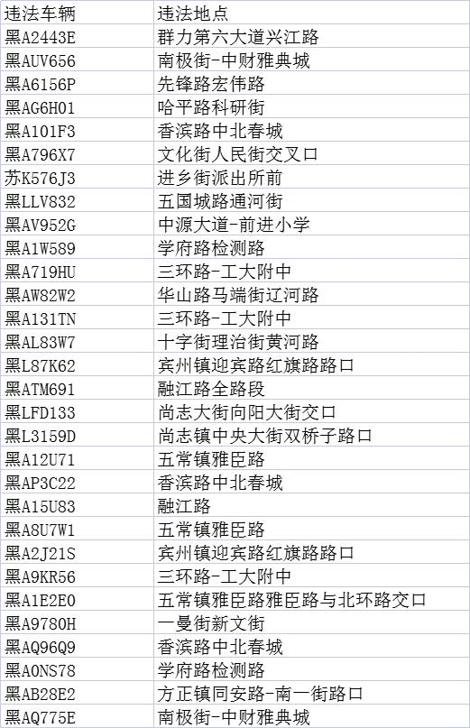 为进一步提升广大交通参与者的安全守法意识,引导市民群众规范出行,营造冰城文明良好有序的道路交通环境,哈市交警部门开设“交通违法曝光台”专栏,持续对机动车闯红灯、机动车不礼让行人、违法停车、机动车随意变更车道、压线、开车接打电话等各类交通违法行为予以曝光。此次曝光的交通违法行为是机动车闯红灯。