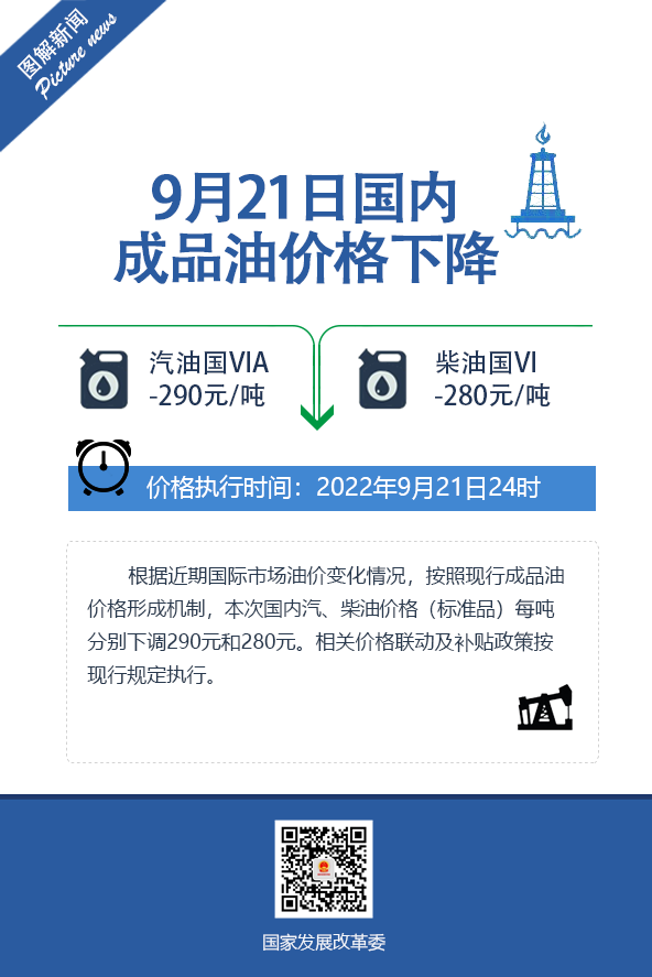 【大河财立方消息】据国家发改委,新一轮成品油调价窗口将于今天(9月21日)24时开启。据国家发改委价格监测中心监测,本轮成品油调价周期内(9月6日—9月20日)国际油价大幅下降。平均来看,伦敦布伦特、纽约WTI油价比上轮调价周期下降6.42%。