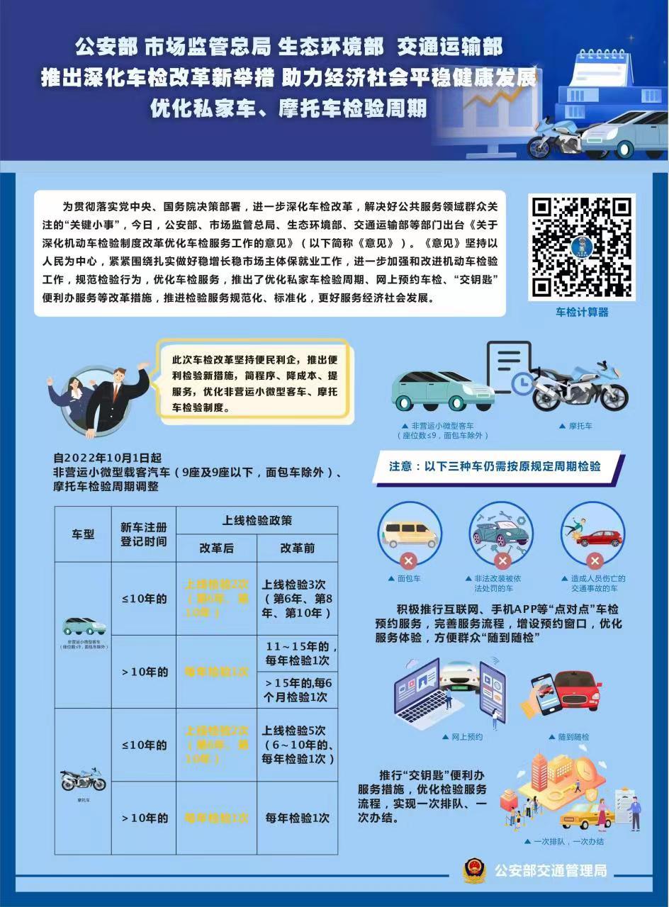 此次改革推出的优化检验周期新措施适用车型包括非营运小微型载客汽车(9座含9座以下,不含面包车)和摩托车。