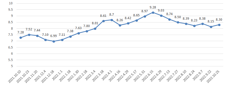市发展改革委发布了本市油价调整的通知:10月25日零时起,92号汽油将上调为8.30元/升,95号汽油上调为8.83元/升,0号柴油上调为7.99元/升。按一般家用汽车油箱50L容量估测,加满一箱92号汽油将多花费约7.5元。