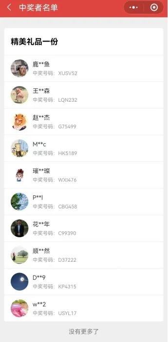 第一期中奖名单已经由系统自动抽取产生,看看是哪些幸运儿呢!