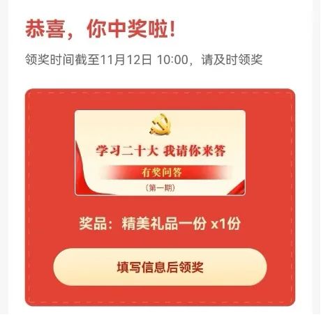 洪泽区委宣传部自11月4日起组织“学习二十大 我请你来答”有奖问答活动!