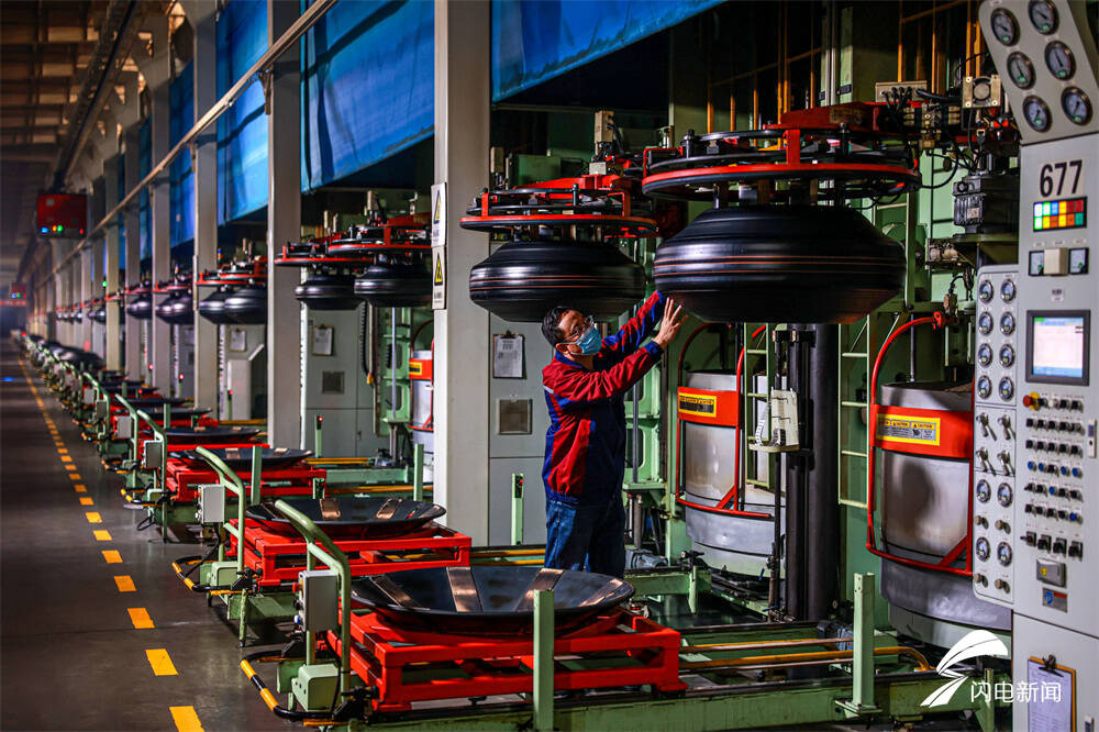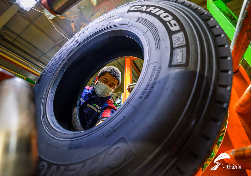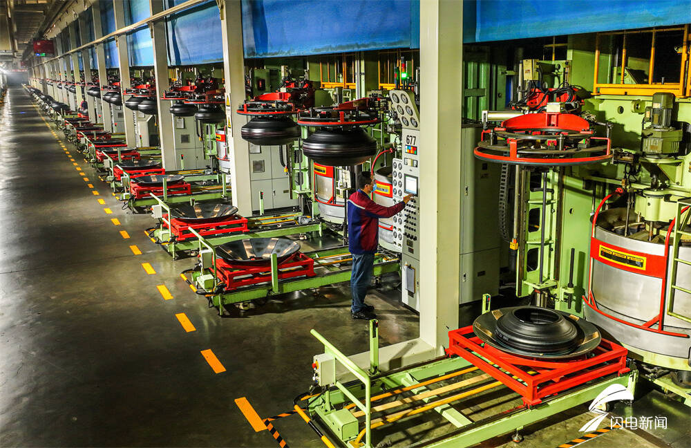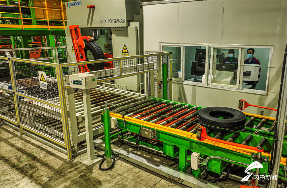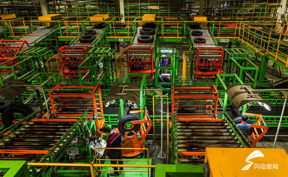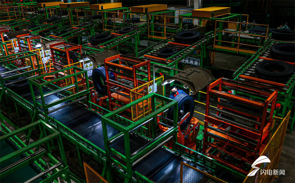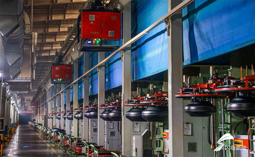 齐鲁网·闪电新闻11月10日讯 11月9日,在山东省荣成市浦林成山(山东)轮胎有限公司的智能化生产车间内,工人们忙碌着赶制出口国外的轮胎订单,几十台自动驾驶的集成人工智能运输车正负责运送轮胎生产原料,刚下生产线的轮胎在空中“行走”,被智能分拣运送到X光设备处进行“体检”,全生产流程实现智能化。