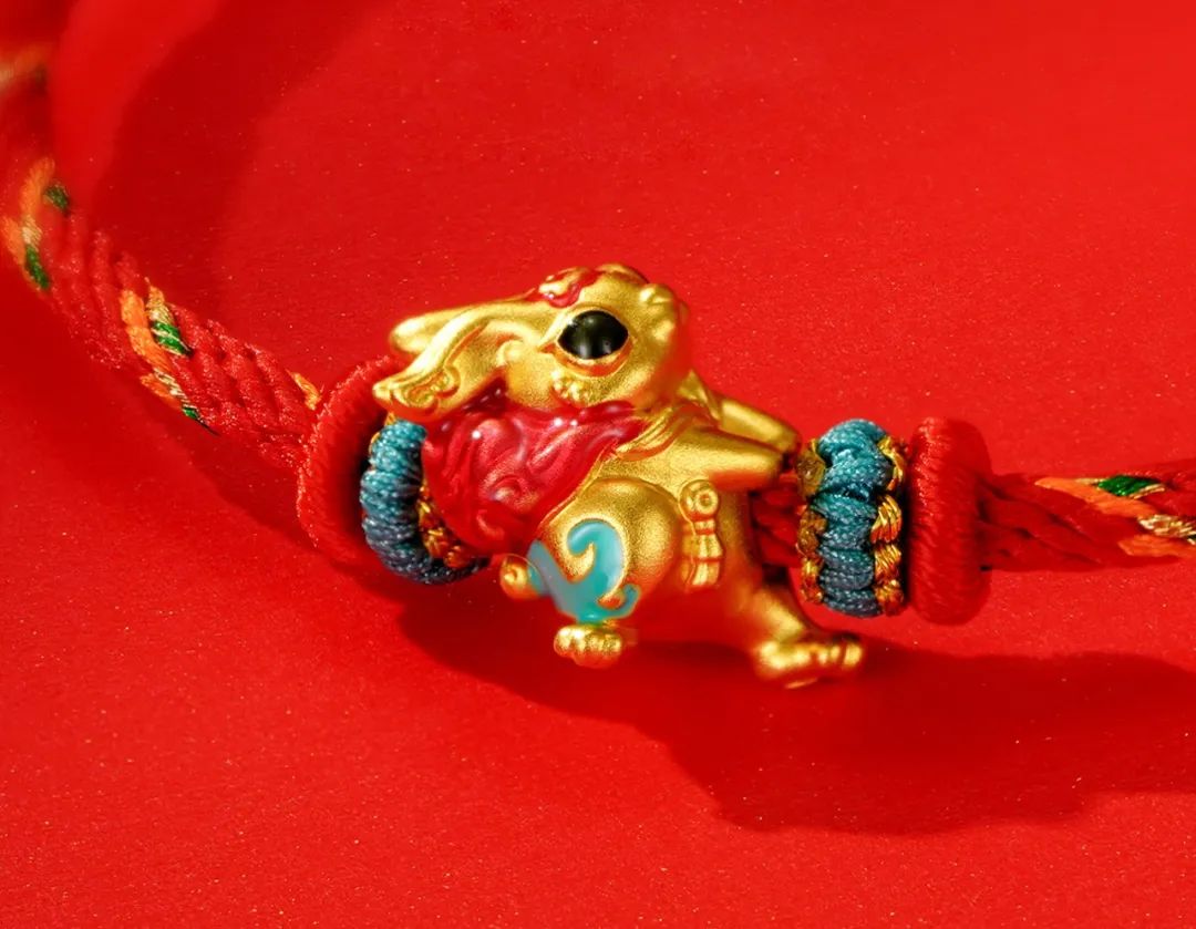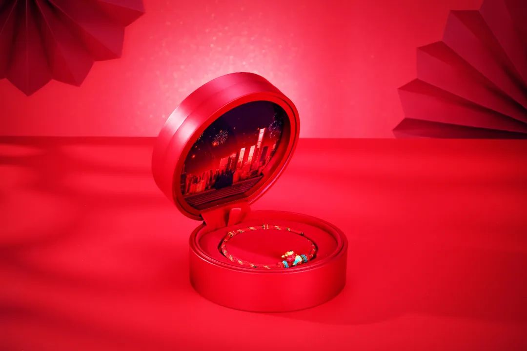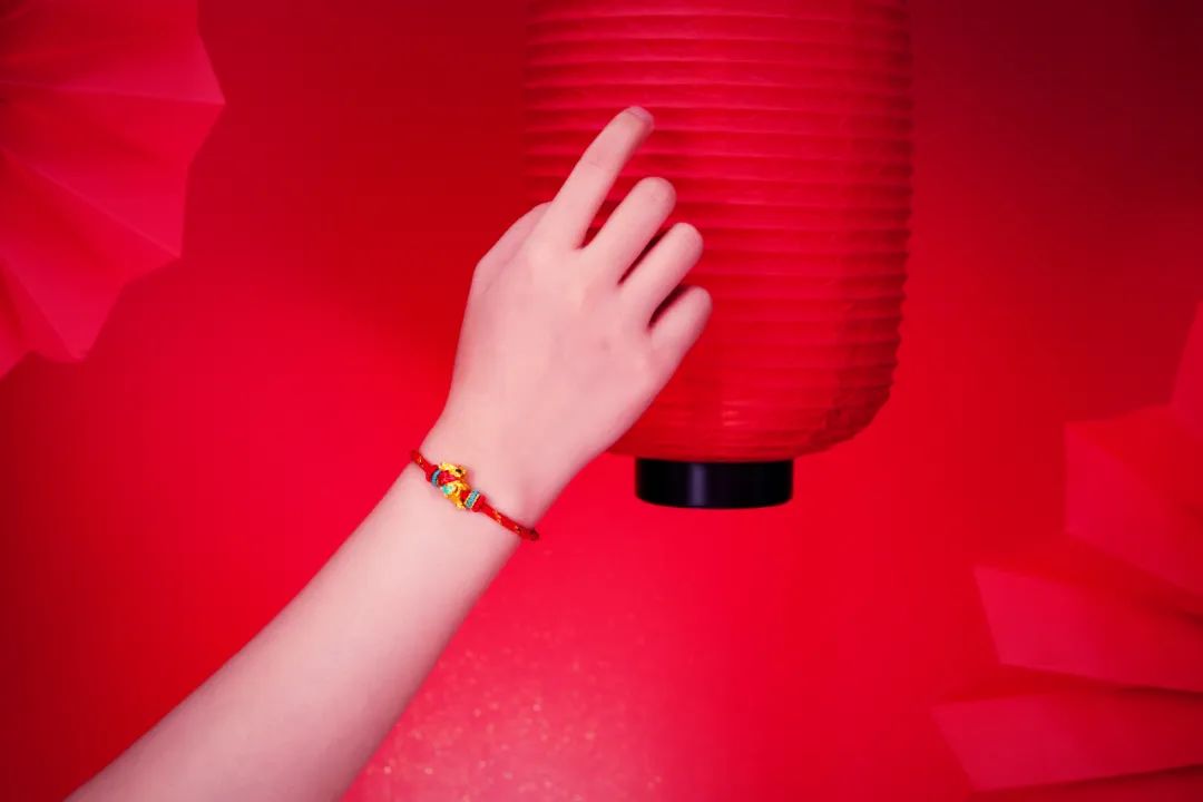 对于中国人来说,有着文化特定符号的“戴红绳、穿红袜”开年习俗。一条称心的开年饰品,应该符合几个条件:喜庆吉祥、造型迷人。更重要的是,官方品牌。