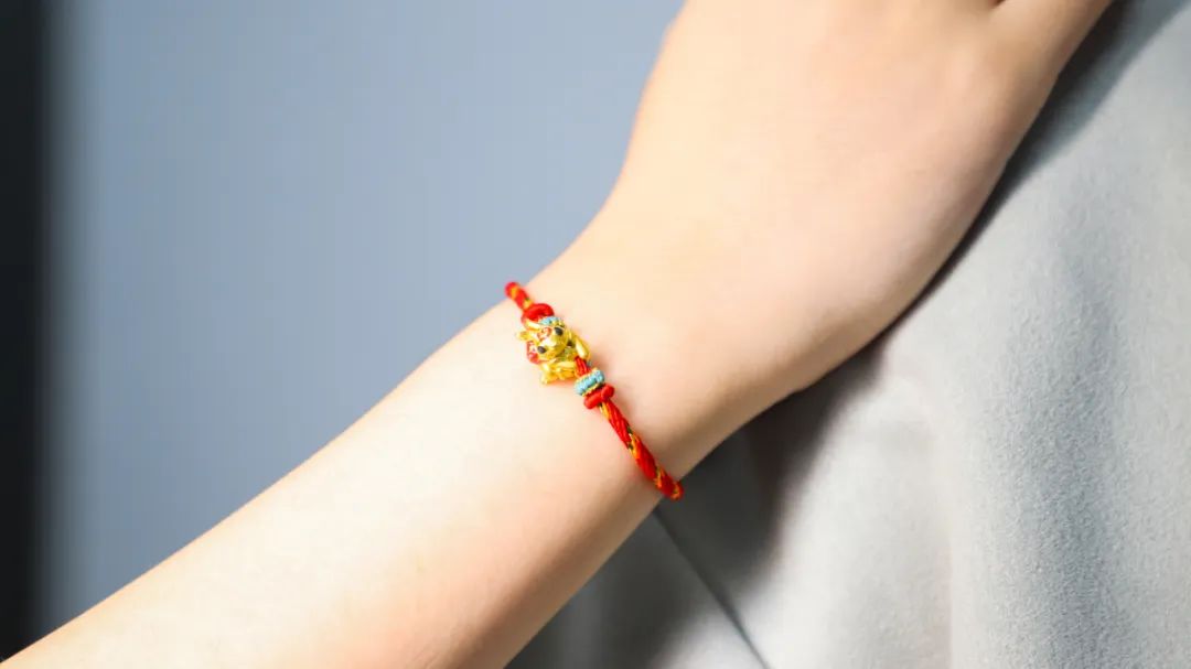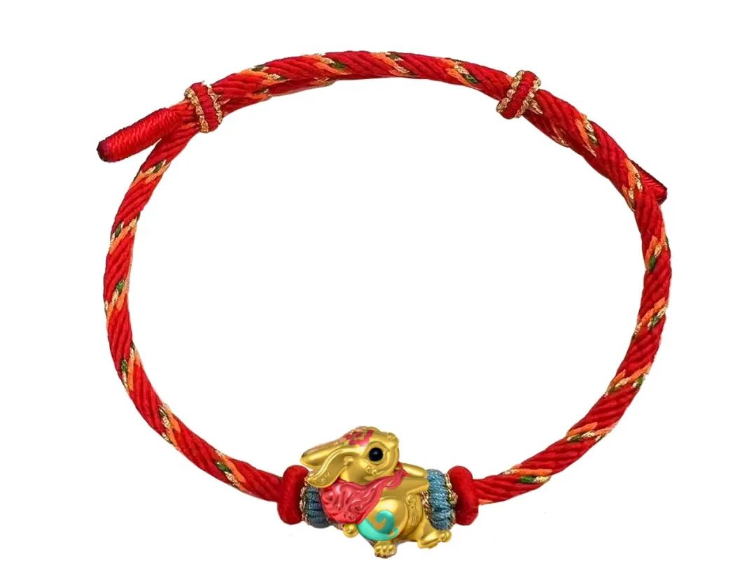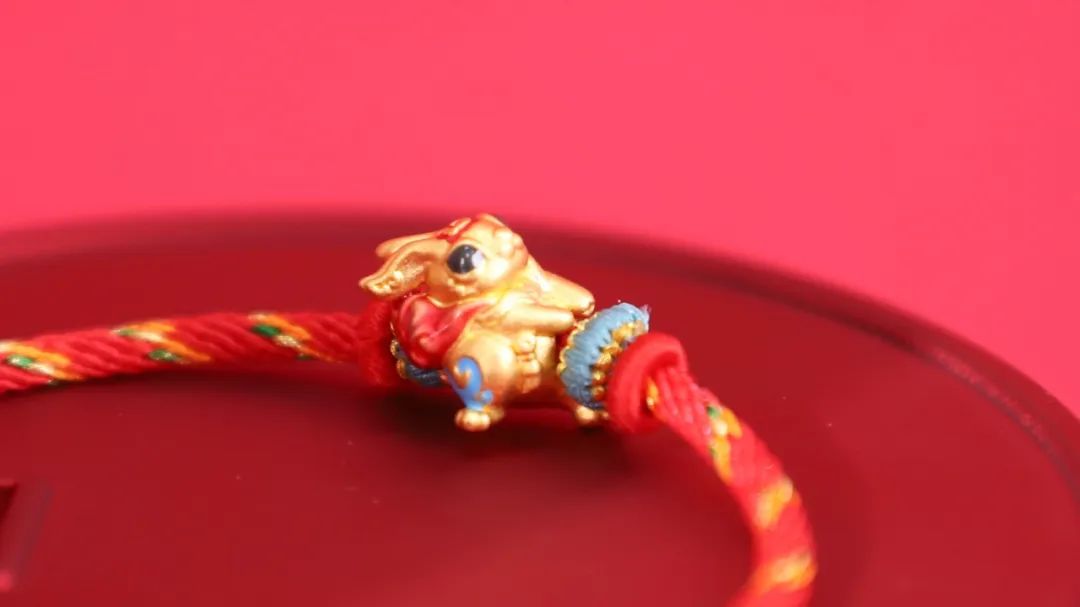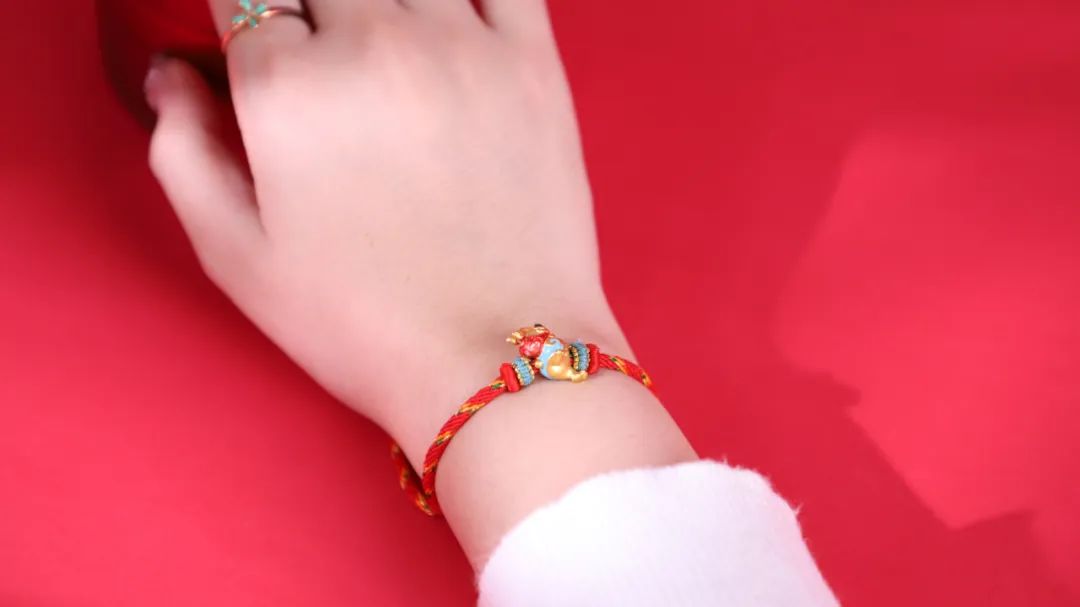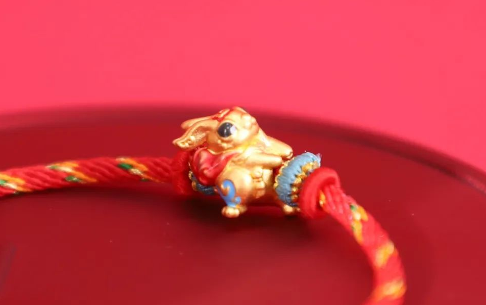 与常规手串不同,《春晚生肖手串》的设计不再是“红绳挂吊坠”,而是将红绳与金饰合二为一。