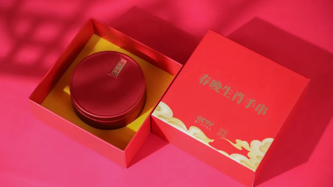 《春晚生肖手串》设计巧妙,还体现在放置它的礼盒上。