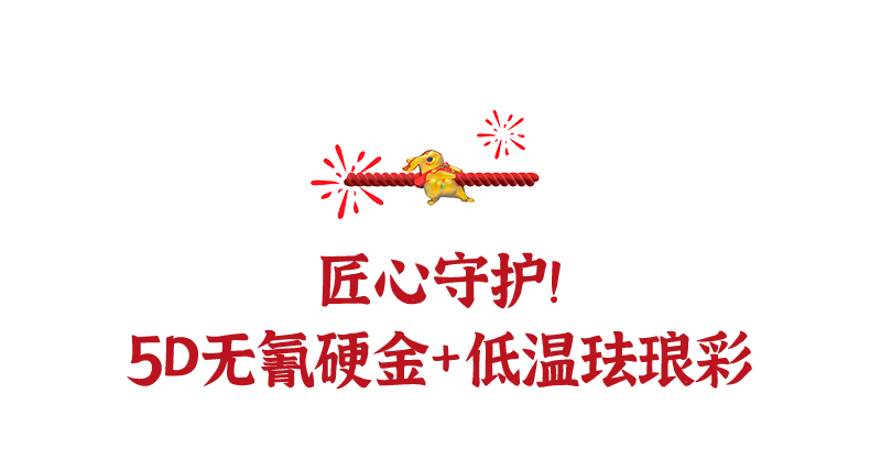 《春晚生肖手串》采用5D无氰硬金与低温珐琅彩工艺相结合,整体色彩鲜艳纷呈,图案饱满雅致,细微处惟妙惟肖,立体感强;