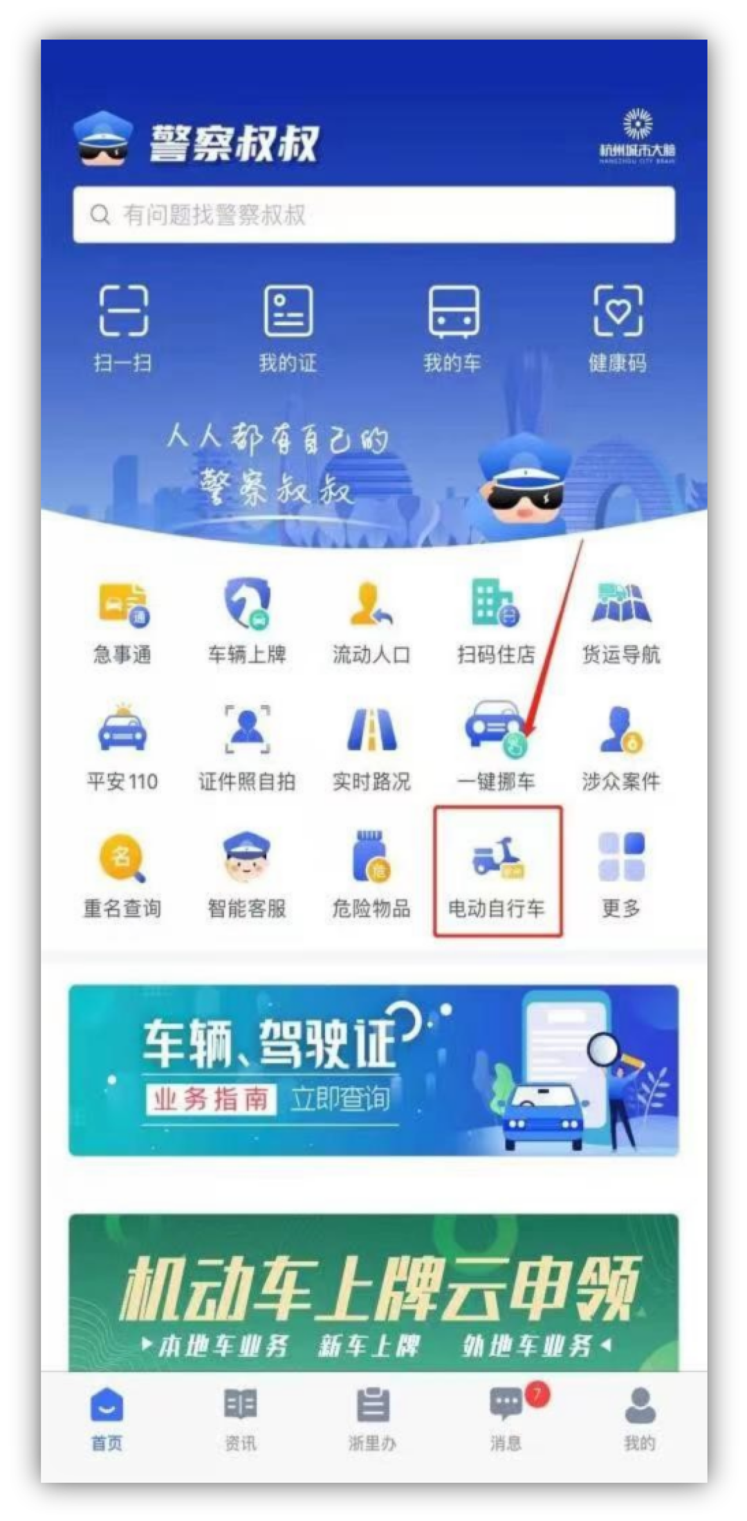 通过“云申领”办理注销:车主手机登录“警察叔叔APP”本人账号,点击电动自行车→车辆注销→点击备案非标电动自行车→选择名下车辆→提交注销。