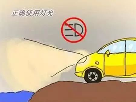 雾天行车应及时打开雾灯、示廓灯或近光灯,如果在高速路上行驶或者雾很浓的情况下还要打开危险报警闪光灯,但切记不要使用远近光灯,因为远光灯是向上方照的,射出的光线被雾气漫反射,会在车前形成白茫茫一片,开车时反而什么都看不见了。