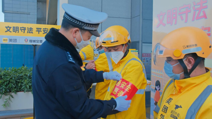 为进一步提升广大市民交通法治意识、安全意识和文明意识,强化第十一个122“全国交通安全日”宣传氛围,12月22日冬至日之际,广州增城公安交警部门联合美团配送在荔城街东汇城广场举办了主题为“共创文明交通,安全情系万家”的警企联动宣传活动。