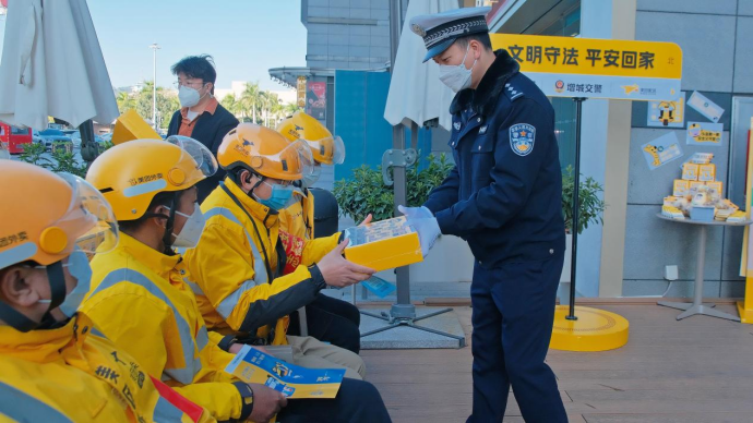 “道路千万条、安全第一条”“头盔戴一戴,安全又可爱”“不做无盔骑士,争当安全驶者”……在活动现场可以看到,交通安全主题宣传角设置在该茶饮店的外卖区域,醒目有趣的宣传警示标语、便携精美的宣传资料一应俱全。据介绍,外卖区域是外卖骑手日常聚集交流、休息等候领餐的地方。“联合外卖配送企业、餐饮实体店,共同打造交通安全宣传新阵地,并依托外卖配送串联,实现点面结合、无缝衔接,这是增城公安交警部门探索新时代交通安全‘精准化’宣教的一个新尝试。”增城公安交警部门相关负责人介绍道。外卖骑手是一个新业态从业群体,交通安全伴随着骑手们的整个职业生涯。“守护和保障骑手的健康和安全一直是我们工作的重中之重,我们内部推出灯塔计划、智能头盔等多个项目加强骑手的出行安全,并在骑行行为的识别技术、教育机制等方面不断加大投入,此次与增城公安交警部门的合作也是履行我们企业社会责任的重要举措之一。”美团配送广州区域安全负责人表示。