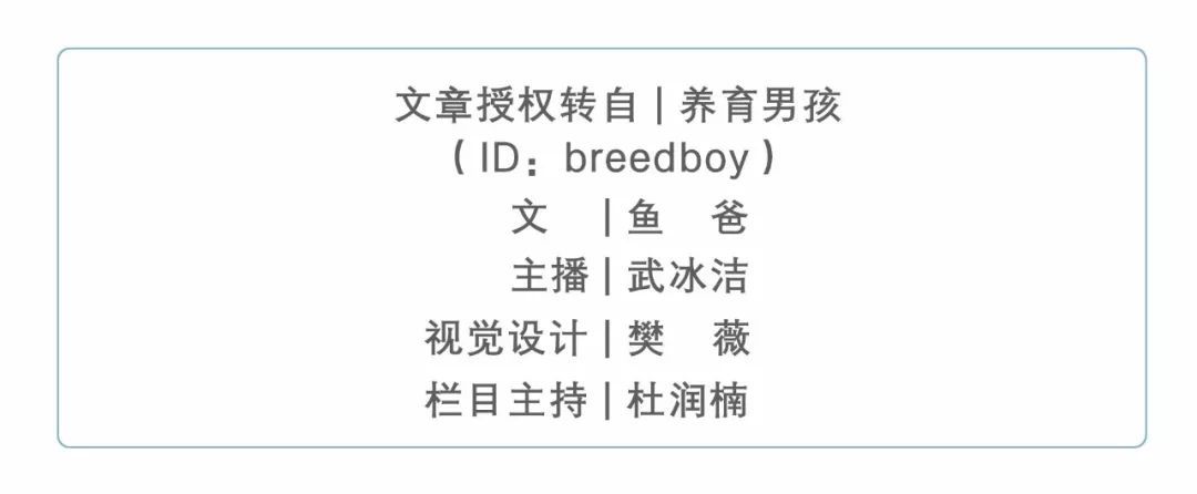 鱼爸,家有小子一枚,立志做一名合格的80后奶爸,童书编辑,阅读推广人。公众号:养育男孩(ID:breedboy) (一个最有爱的公众号,面向家长群体,每天原创分享亲子养育常识、亲子阅读推广、家庭关系建造知识,已出版新书《和孩子一起成长,是最好的教养》