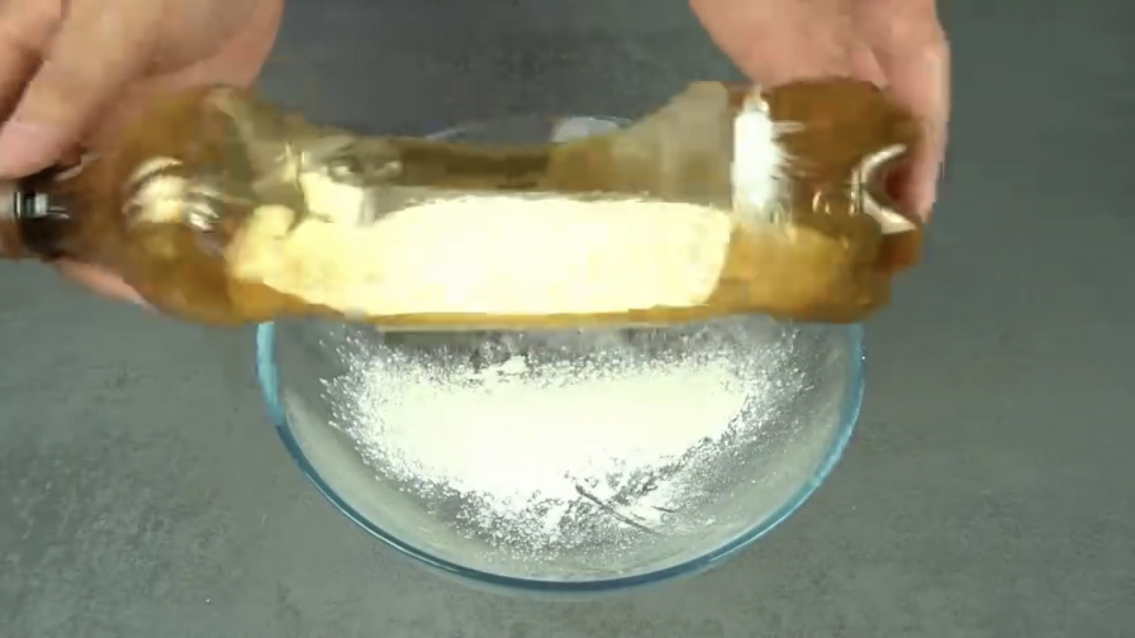 c.将面粉和豆子倒入漏斗中,不停左右晃动漏斗,面粉就会像流沙一样流出,与豆子分离。