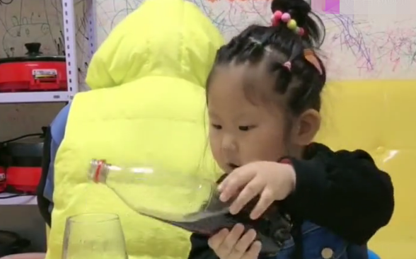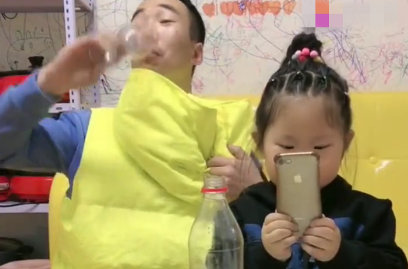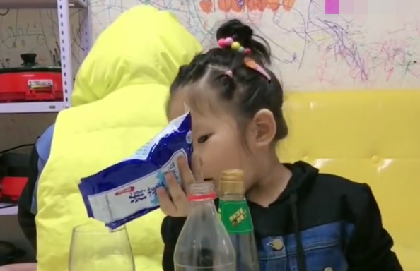 女儿动画看到一半,抬头发现杯子里的可乐没有了,转念一想就知道是爸爸偷喝可乐了,女儿就想惩罚一下爸爸,于是她悄悄拿来盐和酱油,然后把这两样东西倒到杯子里,从外观上看,和可乐没两样。