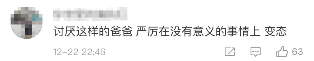 “讨厌这样的爸爸,严厉(体现)在没有意义的事情上面,(属于)变态。”
