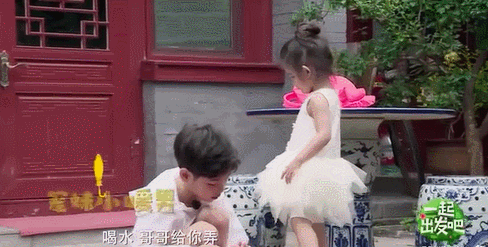 当妹妹告诉他自己口渴的时候,他主动照顾妹妹,帮小女孩把水倒好。