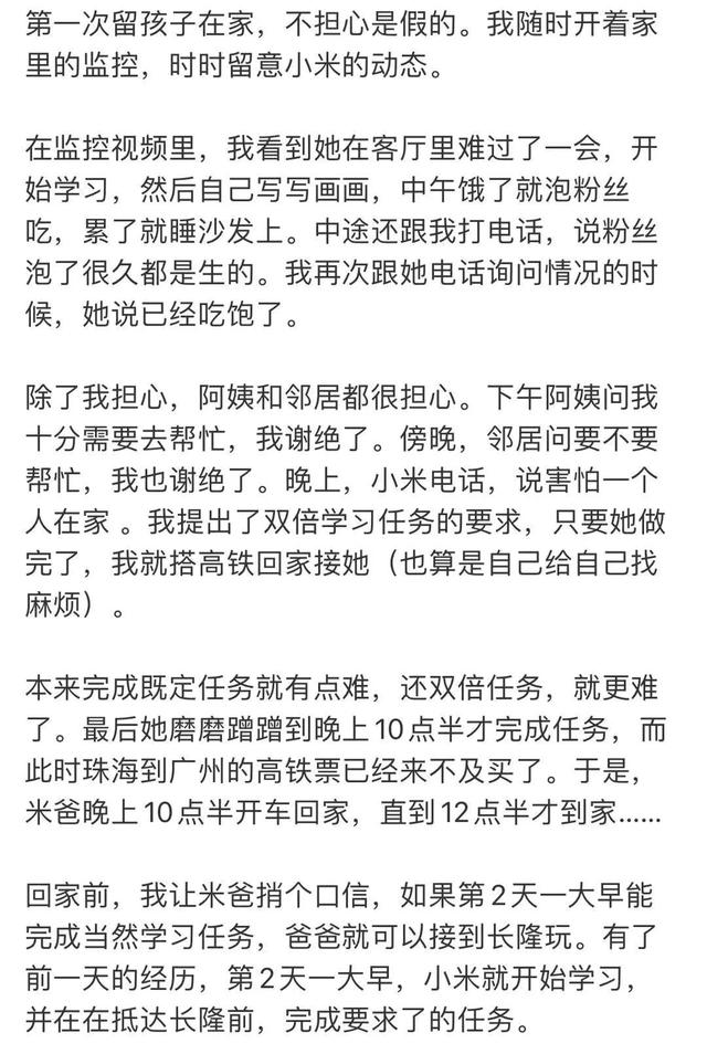 那么问题来了:妈妈的出发点是为了让孩子好好学习,但一家人都远在外地,留一个6岁孩子独自在家,真的合适吗?