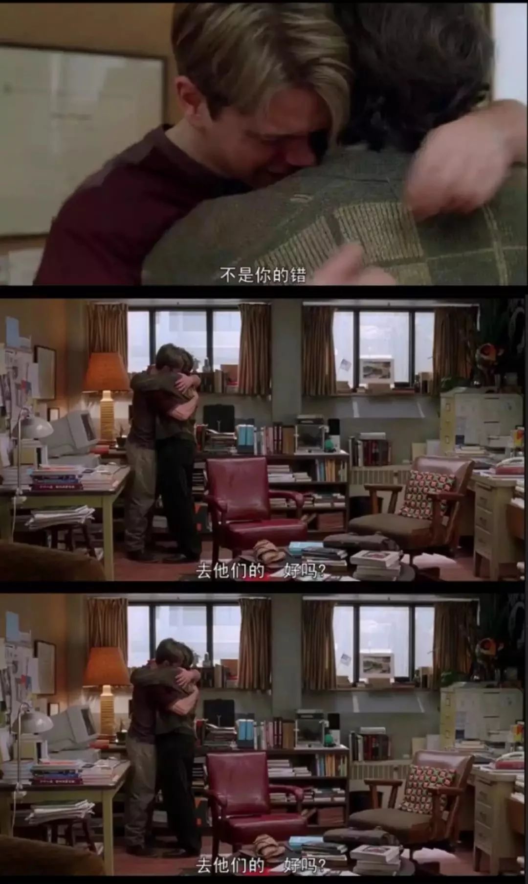 肖恩温和地看着他,一点点靠近,拍着他的背:孩子,那不是你的错。