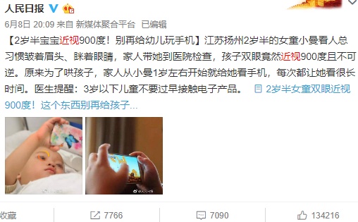 寒假的来临,让放假在家的孩子“机”不离手。电视、电脑、手机、平板就成了孩子们热衷的“玩具”。电子产品色彩明亮鲜艳,视觉刺激比较强烈,过长时间使用往往会引发眼部不适,甚至导致孩子近视。