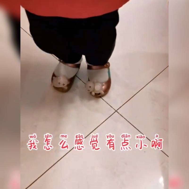 原来在视频中女儿是在问爸爸看看自己的鞋子好不好看呀,爸爸回答说真好看就是感觉鞋子有点小,肉肉都被挤出来了,谁知道女儿却说一点都不小,这双鞋子就和妈妈的一样好看哈哈,真是太有爱了!