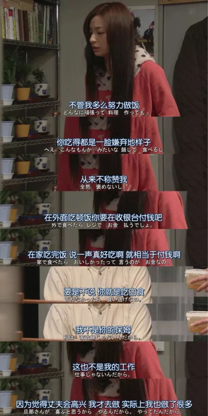 一个同样是妈妈全职带娃的家庭,丈夫特别自然地对镜头说:“别说是冷冻水饺了,给家人吃炸鸡这种'垃圾食品',也是偷懒嘛!”