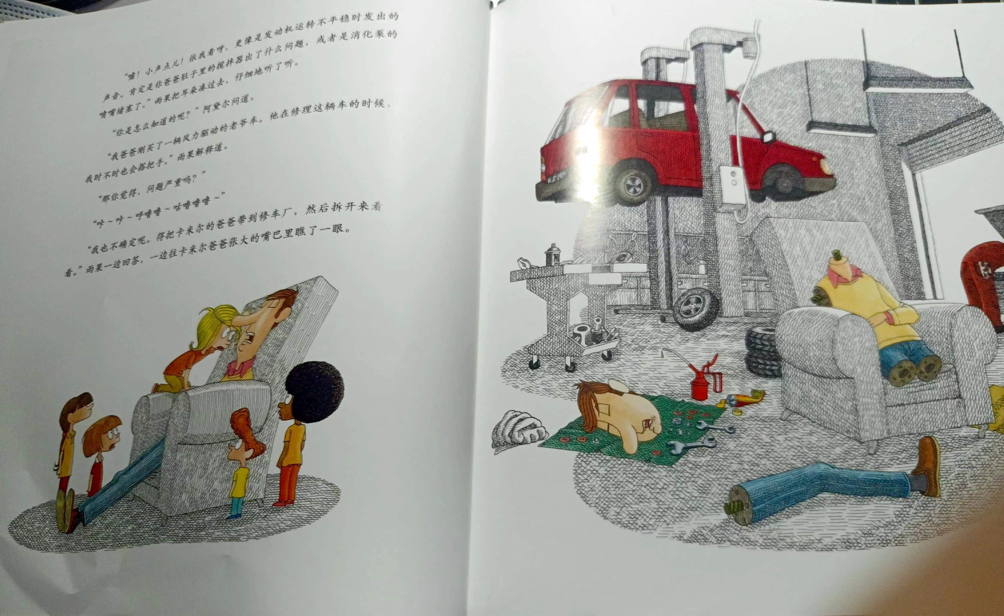 大家伙还商议,要不把爸爸送去修理厂去拆开修理一下。结果又有人提出质疑,觉得爸爸这鼾声,可能是因为爸爸肚子里有只猫。