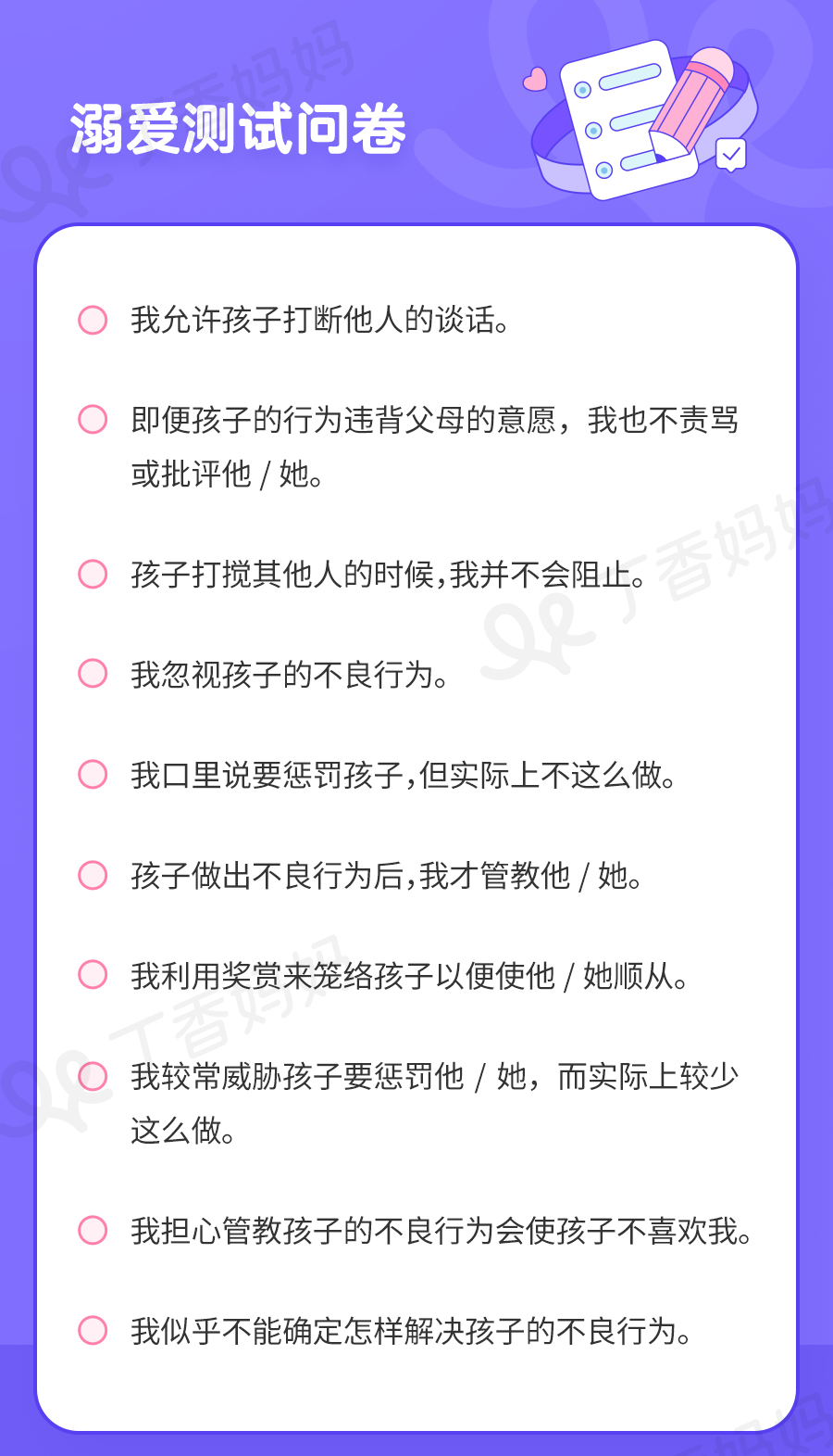 如果题目和自己育儿方式相符的越多,那说明自己比较偏向溺爱孩子。