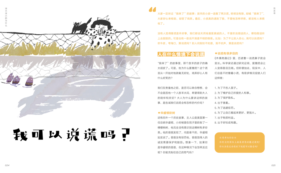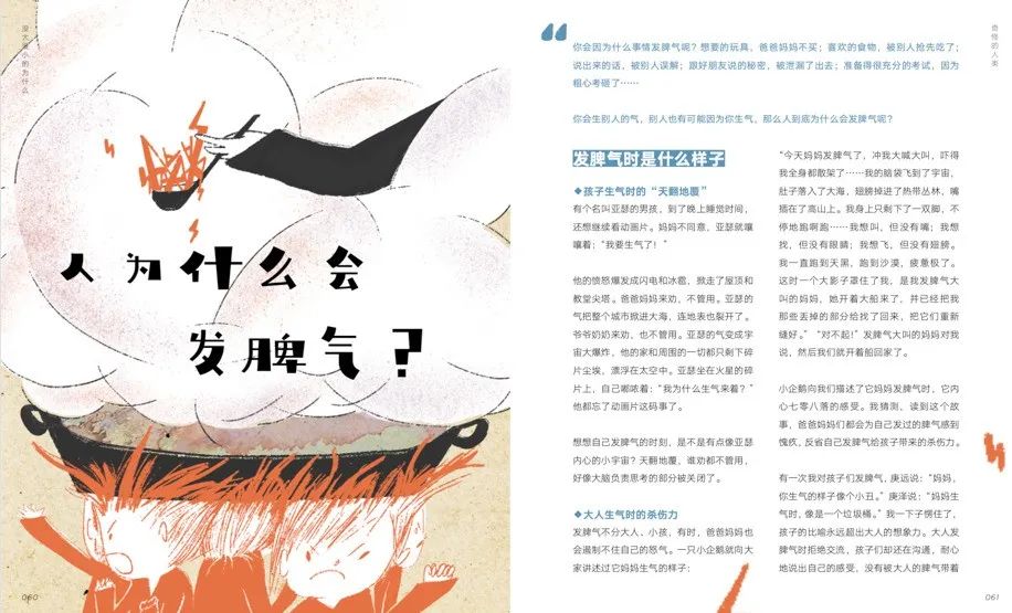 这本书里讲到了很多话题,比如人为什么会发脾气?人为什么会生病?我为什么必须上学?规则从哪儿来?小朋友真的是会问你一些莫名其妙的东西,比如为什么红灯我就得停下,绿灯才能走,谁规定呢?