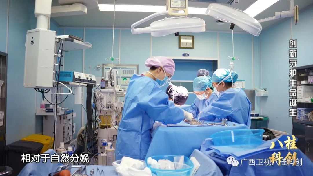 除此之外,广西医科大学第一附属医院产科还引进了针对早产儿的剖宫产术式:保留胎膜囊手术。保留整个胎膜囊的娩出,让孩子能够首次适应外界的压力跟温度,破膜后压力第二次缓解,对于体重在1500克以下,特别是1000克以下的极低体重儿,和孕周在34周以下出生的孩子,能够明显降低神经系统不良预后的发生率。