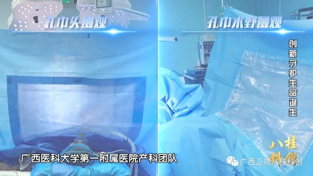 为了实现产妇在手术过程中的参与感,同时不会对手术无菌区域造成污染,广西医科大学第一附属医院产科团队专门研发了一个可视的一体化手术孔巾,并且获得了国家实用新型专利。“自然剖宫产”除了能让母亲看着孩子出生,更重要的是,在分娩过程中向着顺产的优点不断靠拢。