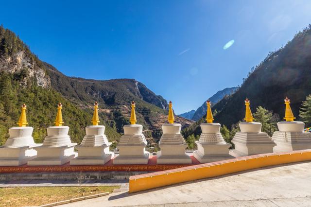 然后可以乘车前往 巴拉 达拥佛塔,可以说是必打卡的地点了,抖音上也是很推荐这里的。达拥佛塔是由8座圣洁的白塔组成的佛塔群,分别供奉的是藏传佛教最有代表性的:“佛祖释迦牟尼、莲花生大师、 长寿 佛、四臂观音、文殊 菩萨 、黄财神、尊胜佛母、度母”,建八个佛塔代表藏地藏 八宝 吉祥,赐予 巴拉 人风调雨顺、六畜兴旺。